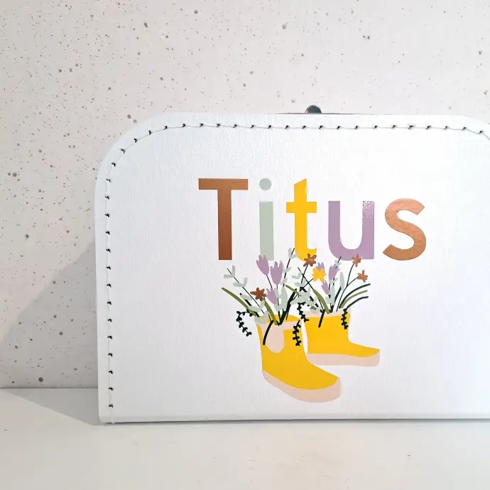 Lieselot maakt unieke, gepersonaliseerde (kinder)koffertjes op basis van het geboorte-, huwelijks- of communiekaartje.